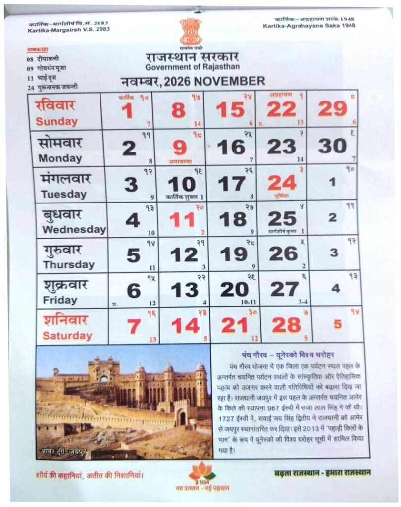 राजस्थान सरकार का कैलेंडर 2026 क्या है?